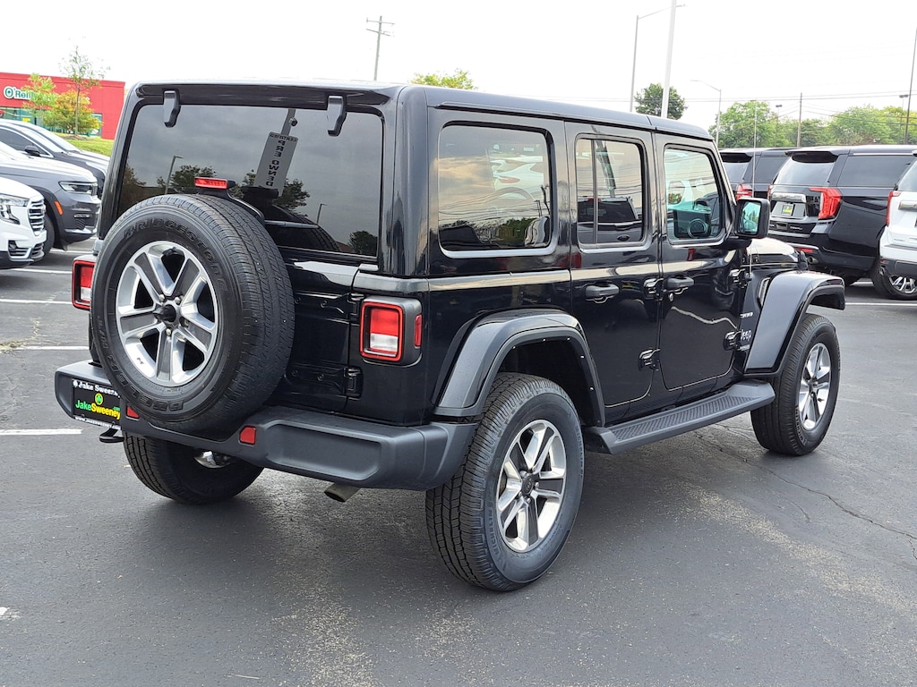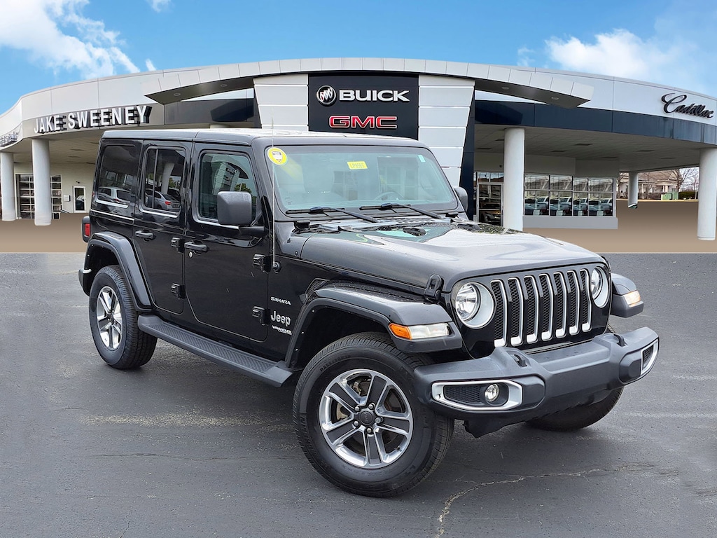 Have you ever wondered where to buy a Certified used car? Look no further! Jake Sweeney is here to Help. If you are in need of a new or used vehicle, we are offering you the ability to shop online and have your vehicle delivered to your home. Come visit us in store as well for a fun, fast, and easy car buying experience! Black Clearcoat 2021 Jeep Wrangler Unlimited Sahara 4WD 8-Speed Automatic 2.0L I4 DOHC Apple CarPlay/Android Auto, Body Color 3-Piece Hard Top, Brake assist, Delay-off headlights, Electronic Stability Control, Front fog lights, Fully automatic headlights, Heavy Duty Suspension w/Gas Shocks, Integrated Voice Command w/Bluetooth, Leather steering wheel, ParkView Rear Back-Up Camera, Power steering, Power windows, Quick Order Package 22G, Remote keyless entry, Steering wheel mounted audio controls, Telescoping steering wheel, Traction control, Wheels: 18" x 7.5" Polished w/Gray Spokes.