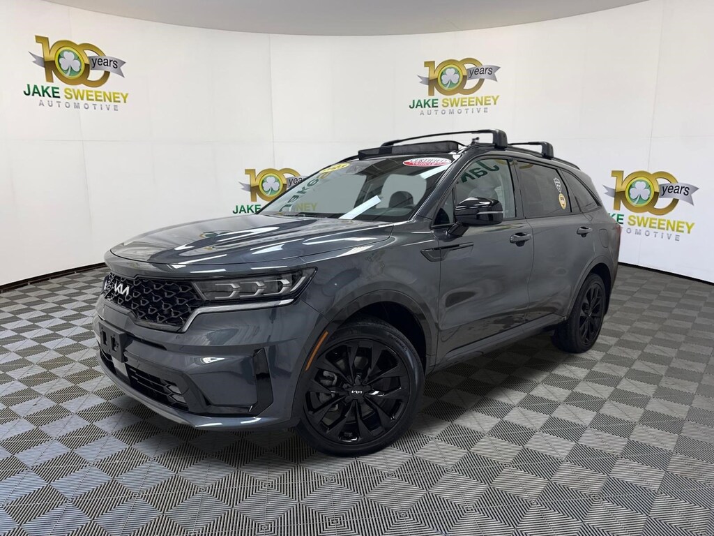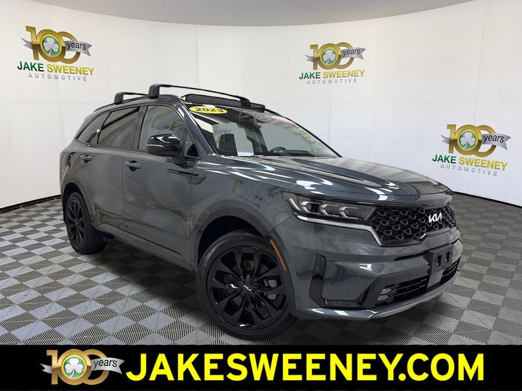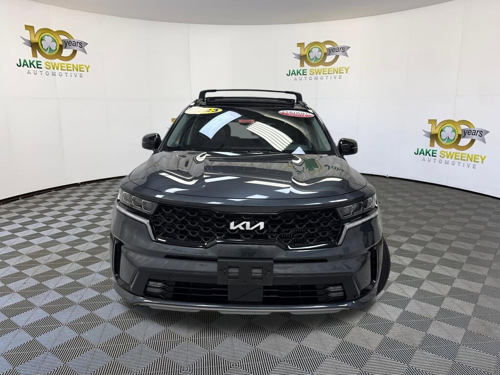 Our family friendly 2023 Kia Sorento SX AWD is powerful and stylish in Gravity Gray! Motivated by a TurboCharged 2.5 Liter 4 Cylinder that provides 281hp tethered to an 8 Speed Automatic Dual-clutch transmission for confident command of your next trip. This All Wheel Drive SUV is also easy to maneuver and terrific at towing, and it scores nearly 27mpg on the highway. All that versatility comes with vibrant style, as our Sorento rides with LED lighting, fog lamps, a panoramic sunroof, a hands-free tailgate, 20-inch gloss-black wheels, and matching accents.